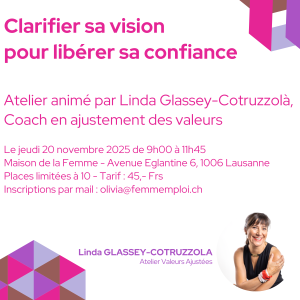 Atelier animé par Linda Glassey-Cotruzzolà, formatrice et coach en ajustement des valeurs, fondatrice de l’Atelier Valeurs Ajustées.