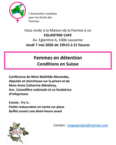 Dans le cadre des rencontres Eglantine Café, nous vous invitons à une table ronde avec Mathilde Marendaz, députée, et Anne-Catherine Ménetray, toutes deux membres de InfoPrisons, pour discuter des réalités et des enjeux liés aux femmes en prison.
