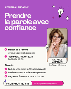 📞 Informations & questions : Olivia Prangey-Amzallag, Fondatrice de l’association Femm’Emploi – 079 192 02 64